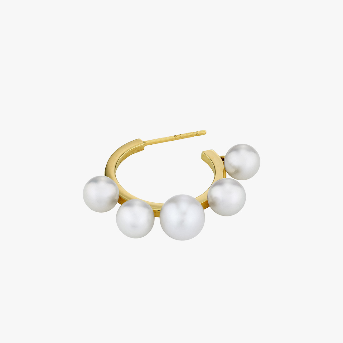 艶のあるパールがリズミカルに揺れるモダンなフープピアス。