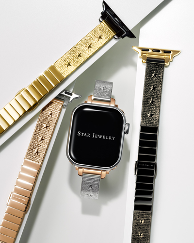 ブラックバンド×イエローゴールド(写真右)のアップルウォッチバンドが、